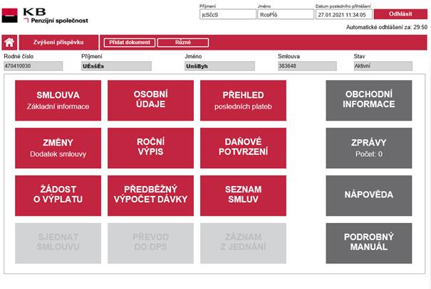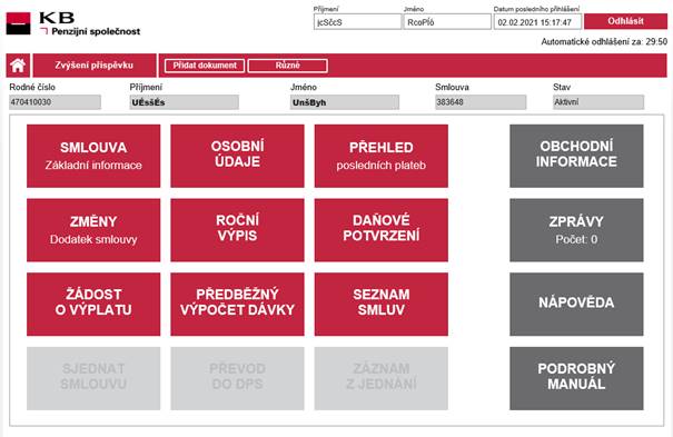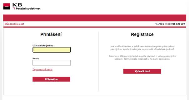 - klient KB PS, který je majitelem smlouvy o penzijním připojištění nebo doplňkovém penzijním spoření, a který má přidělena práva ke vstupu do aplikace |