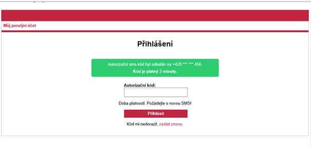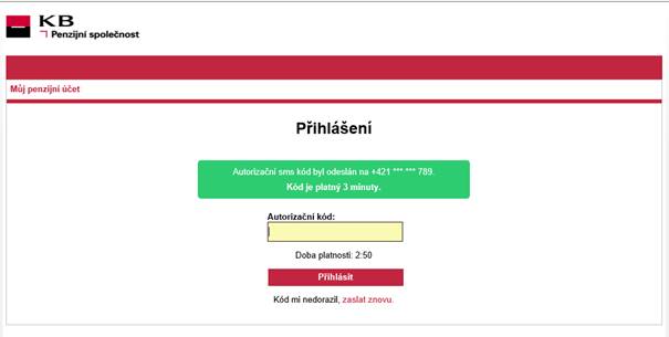 V případě vypršení platnosti SMS kódu je možné znova odeslat novo SMS pro přihlášení.