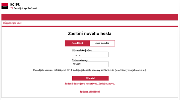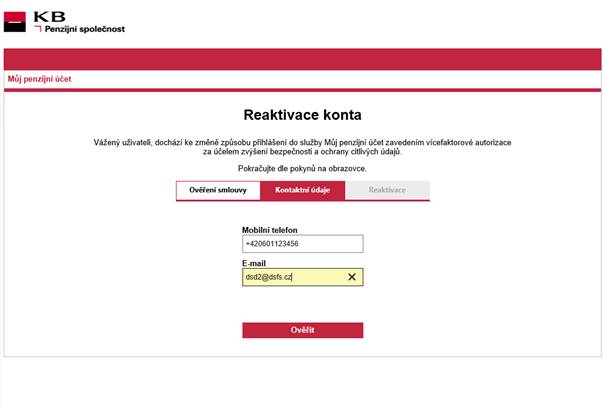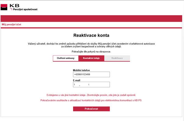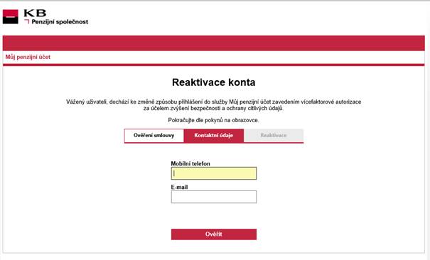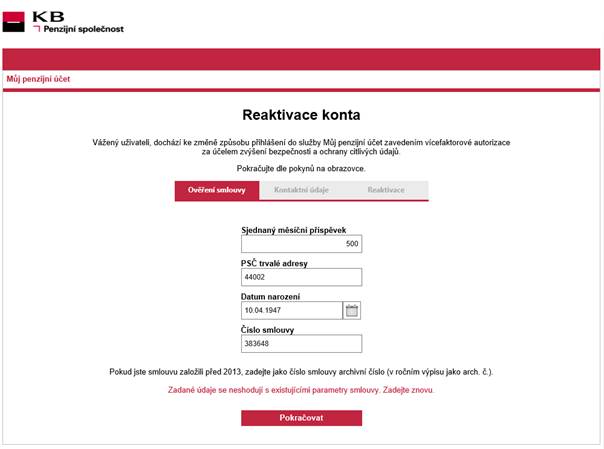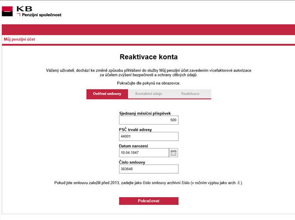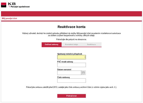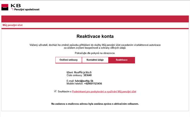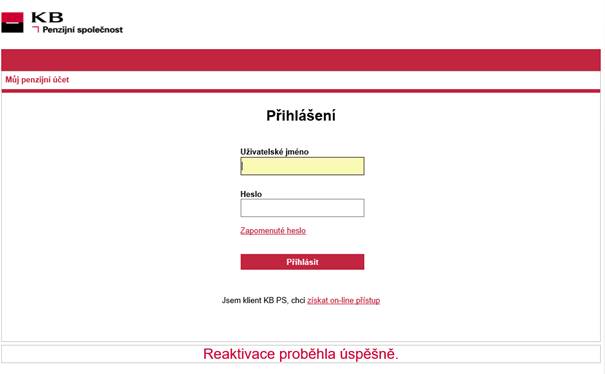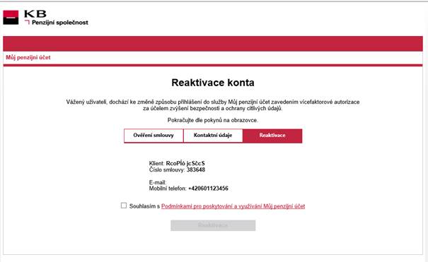 5.1.3 Reaktivace přístupu na Můj penzijní účet