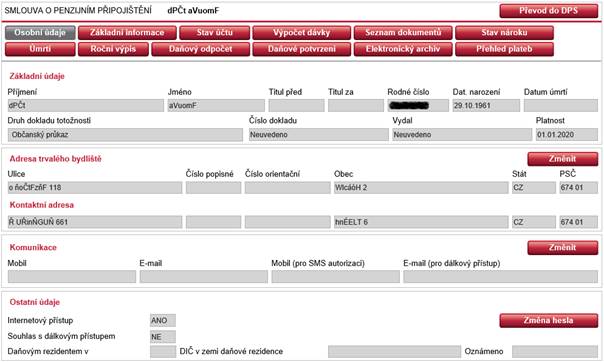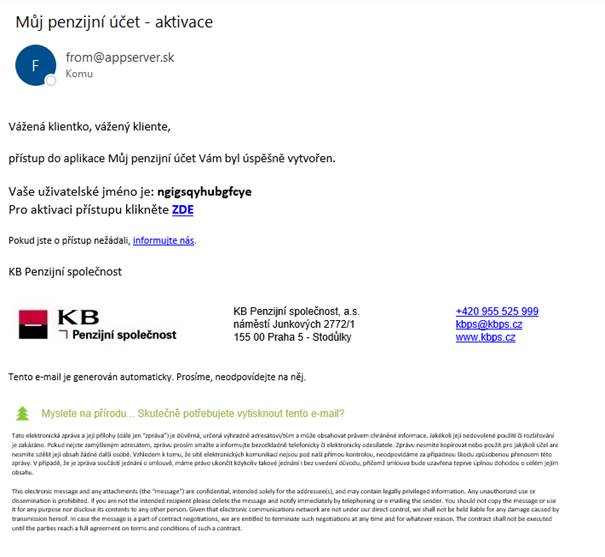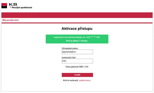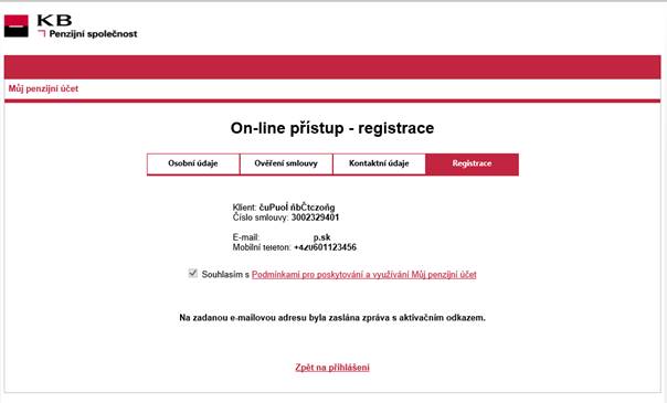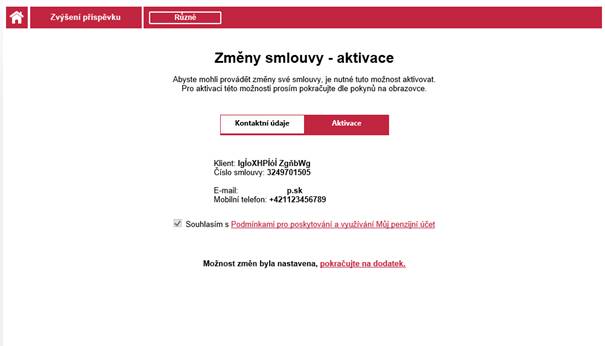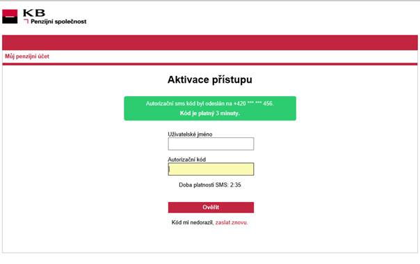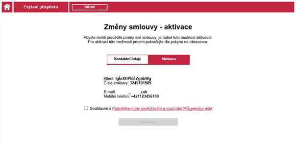 5.1.2 Aktivace přístupu na Můj penzijní účet
