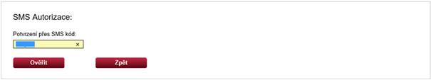 Pro klienta se po zádaní vyžádá vstup SMS kódu zaslaného na mobilní telefon.