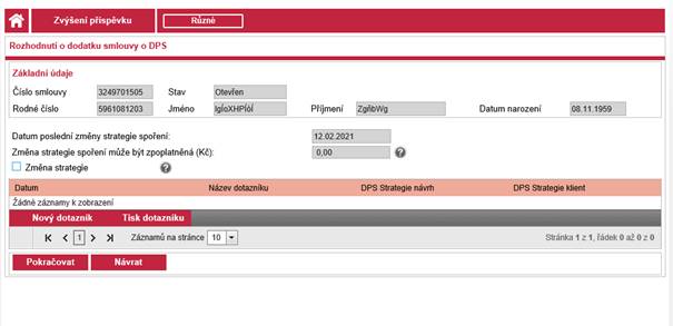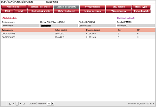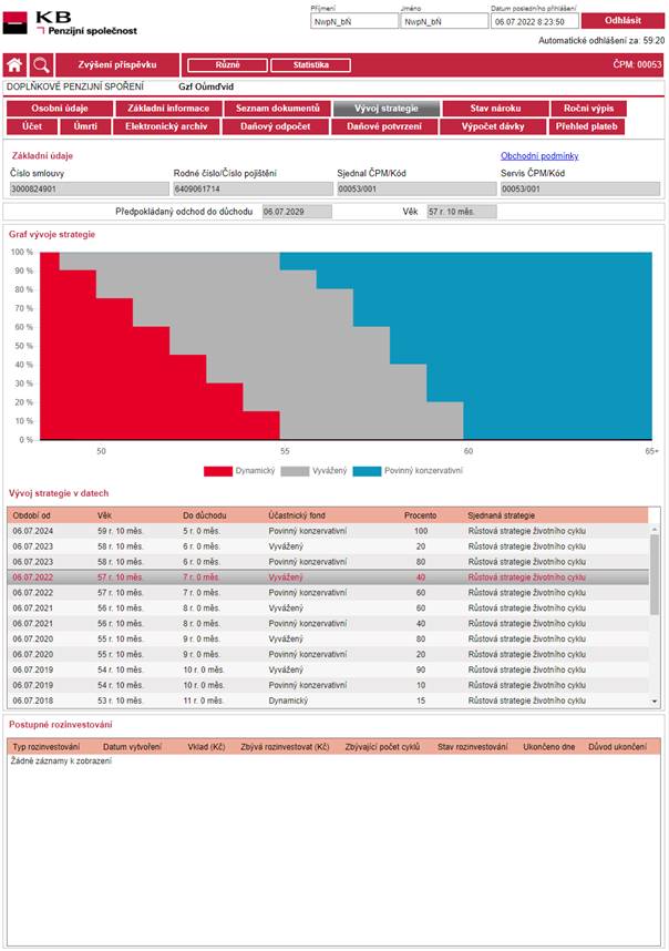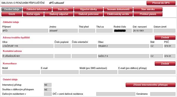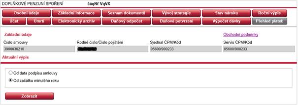 · penzijní plán – zobrazí aktuální platný penzijní plán pro danou smlouvu TF
