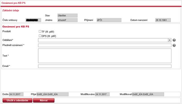 · účastník - Oznámení pro ps – spustí typování příslušného oznámení (viz kapitola 5.2.2 Oznámení pro PS)
