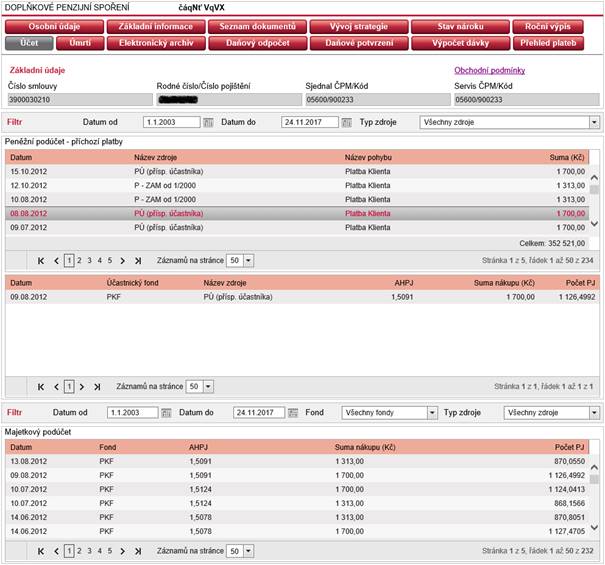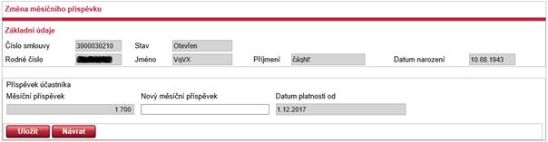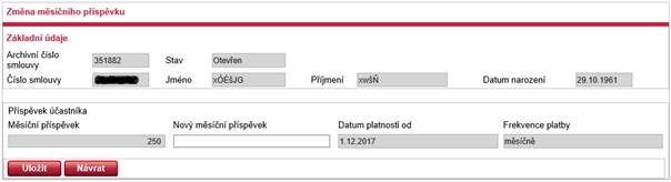 · Historické změny dohodnutých plateb na smlouvu včetně podílu účastníka, zaměstnavatele a třetích osob