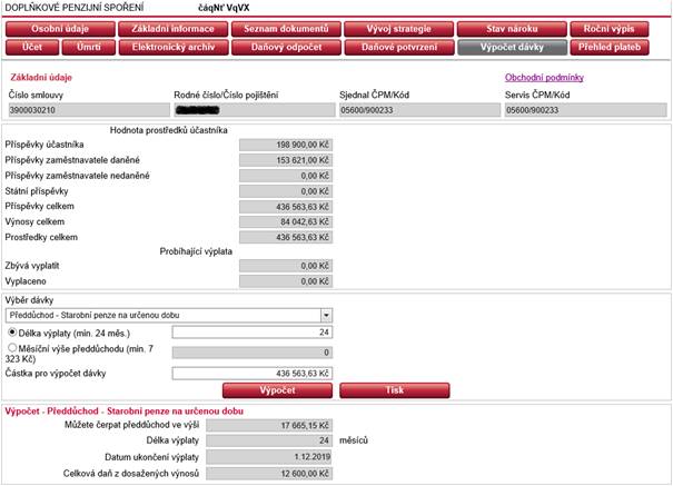 · Výpočet – provede výpočet dávky pro aktuální stav smlouvy, evidované finanční prostředky a vybranou dávku (Obrázek 79)