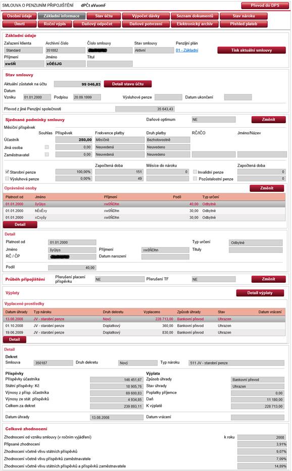 · Aktuální stav nároku včetně nároku v případě úmrtí účastníka
