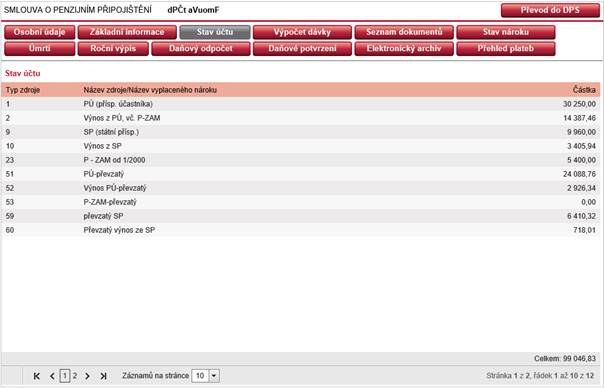 5.3.11 Přehled plateb – Aktuální stav účtu účastníka DPS