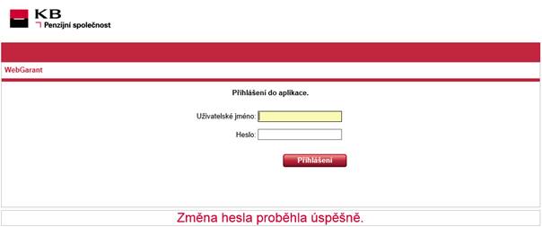 Při přihlášení do WebGarant je vyžádaný login a heslo uživatele (Obrázek 1). Úspěšné i neúspěšné připojení je zaznamenáno. Podle typu uživatele a jeho přístupových práv je zobrazena vstupní obrazovka. Součástí přihlašování v případě práce s dokumenty je ověření klienta a SMS autorizace.