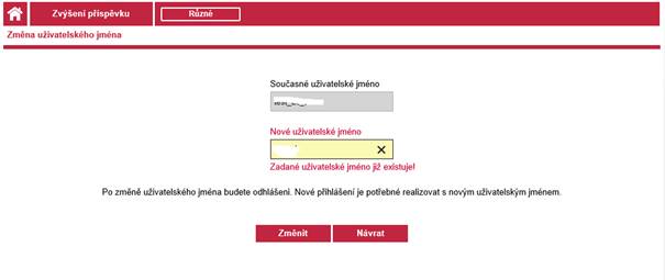 Podmínkou je, že zvolené uživatelské jméno ještě není použito jiným uživatelem aplikace